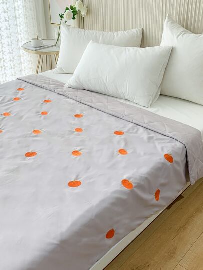 Pumpkin Embroidered Bedspread - Light Grey - View 1
