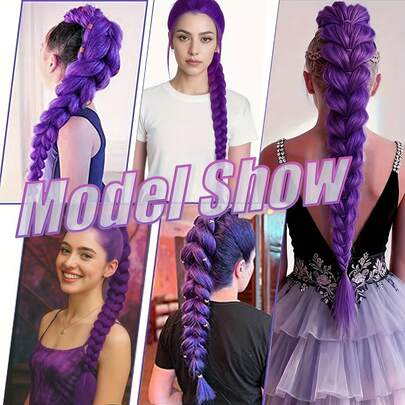 Lila flätad hästsvansperuk med klor, K-pop-stil syntetiskt rakt hår med hästsvans, festklänning, MERISIHAIR högtemperaturfibermaterial, lila klämmor med hästsvans, naturligt utseende med hästsvans för kvinnor - Multifärgad - Visa 6
