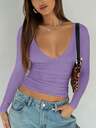 Trendig sexig V-ringad tight passform långärmad baslagertopp, vår/sommar ny ankomst