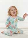 Spädbarnsflicka Tight Fit Rosa Rosett Enhörning Digitalt Tryck Långärmad Dragkedja Jumpsuit
