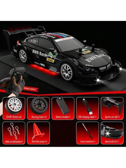 RC Drift Racing 1:24 Scale RC Car, 2.4G Remote Control Car, 20+Km/H High Speed Racing Car, Drift Car, With Drift Tires, Obstacles And Lights, Suitable For Christmas, - Multicolor - View 1