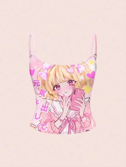 ROMWE Grunge Punk Anime Cartoon Heart Graphic Cute Kawaii Camisole Tank Top For Women