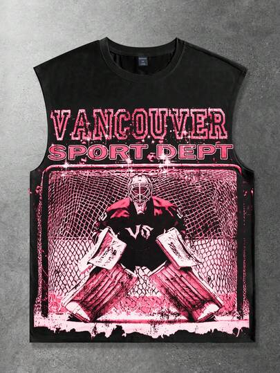 ROMWE MEN Street Life Men's Casual Fashionable Street Wear Everyday Commute Football Player Letter Print Loose Tank Top, Summer - Black - View 1