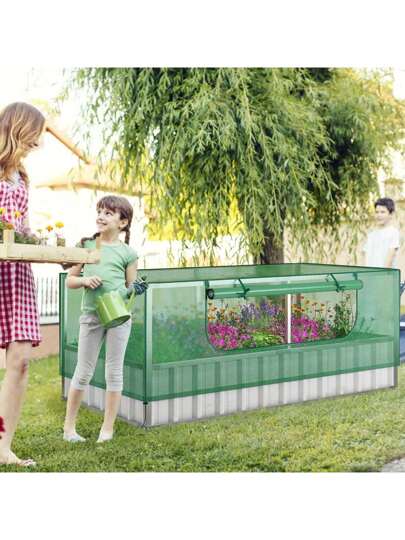 Upphöjd bädd med växthus, 2 i 1 planteringslåda i metall med PE-överdrag, blomsterbädd med ventilerat fönster, kall ram för blommor, örter, grönsaker och frukt, 174 x 90 x 70 cm - Grön - Visa 1