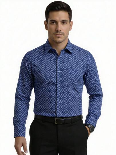Men's Printed Dress Shirt, Long Sleeve, Slim Fit, Comfortable