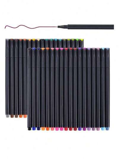 Random 1 Pc/3pcs/6pcs/9pcs/36pcs Fine Point Permanent Ink Markers Fineliner For Note Taking Calendar Drawing Art Office School Supplies For Writing Paper - Black Pen Barrel - View 11
