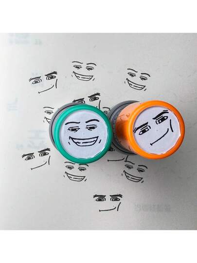 Random Color Expression Stamp Case - Cute And Funny Black Ink Stamps - Funny Expression Stamps - Suitable For Everyday Office Use, Labels And Instruction Stamps Teacher Holiday Party Christmas Halloween Decoration Atmosphere - Multicolor - View 1