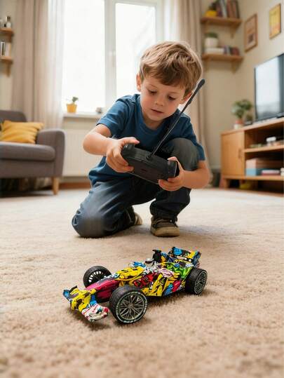 Slumpmässigt graffitimönster fjärrstyrd bil, vetenskaplig leksak för barn, gul - Graffitibil - Visa 1