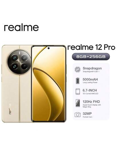 Realme 12pro 5G Smartphone, 6.7-Inch 120Hz Display, 50MP Rear Camera,5000mAh Large Capacity Battery, European Version - Beige - View 1