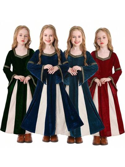 Renaissance Vintage Medieval Princess Queen Costume, Musical Theater Stage Performance Outfit, Palace Style Flared Sleeve Long Dress