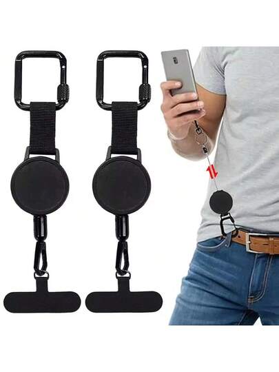 Retractable Anti-Theft Phone Holder Smartphone Safety Lanyard Stra With Carabiner Anti-Drop Harness For Hiking Cycling Climbing - Black - View 1