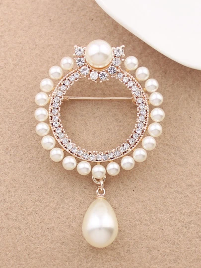 Rhinestone & Faux Pearl Decor Brooch - Gold - View 1