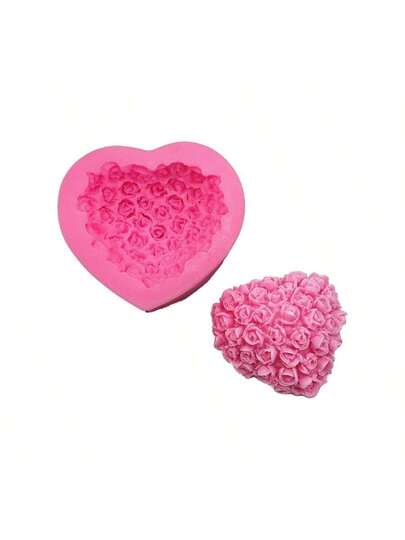Rose Flower & Heart Shaped Silicone Mold, DIY Candle, Wax Melts, Resin Crafts, Jewelry Making Tools, Valentine's Day - Pink - View 1