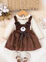 Set med broderad spetskrage och rutig kjol för flickor i vintagestil