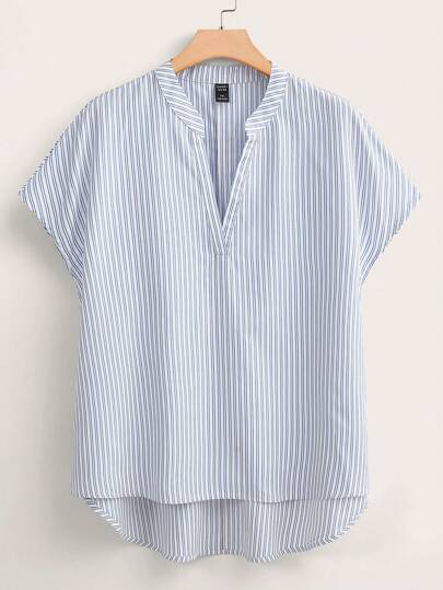 Rusticease Plus Size Women Striped V-Neck Batwing Short Sleeve Casual Loose Fit Tunic Blouse,Spring/Summer/Vacation - Blue and White - View 1