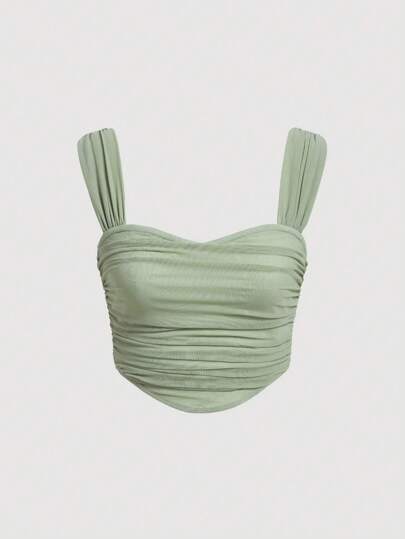 SHEIN MOD Solid Ruched Wide Straps Top