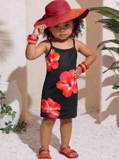 SHEIN Baby Girl Floral Print Casual Strap Dress