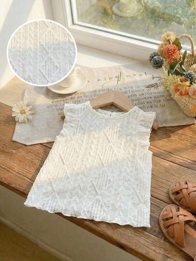 SHEIN Babygirl Cute Casual Versatile Jacquard Knit Ruffle Trim White Blouse - Multicolor - View 1