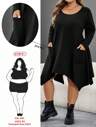 SHEIN CURVE+ 2025 Plus Size Dam Enfärgad Kortärmad Vårklänning med A-linjeformad Rynkad Panel, Curve Plus, Hoho Vacation