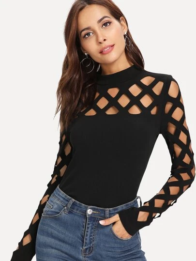 SHEIN Clasi Halvpolokrage Cure Axelfri & Ärmar Topp - Svart - Visa 1