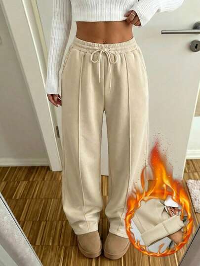 SHEIN EZwear Pebble Seam Detail Raka ben träningsbyxor - Kaki - Visa 1