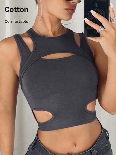 SHEIN ICON Enfärgad, utskuren och bekväm Y2K-linne med kort snitt - Grå - Visa 1