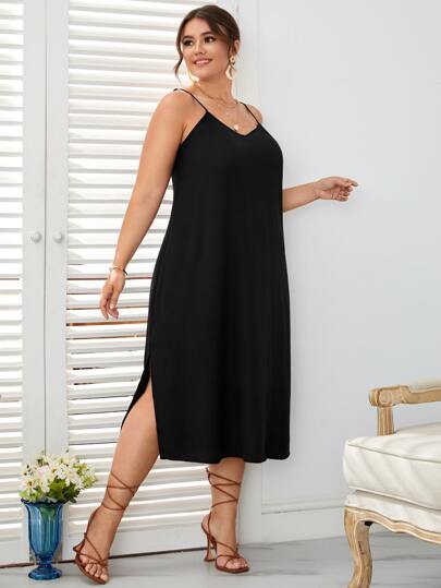 SHEIN LUNE Plus Slit Hem Cami Dress - Svart - Visa 1