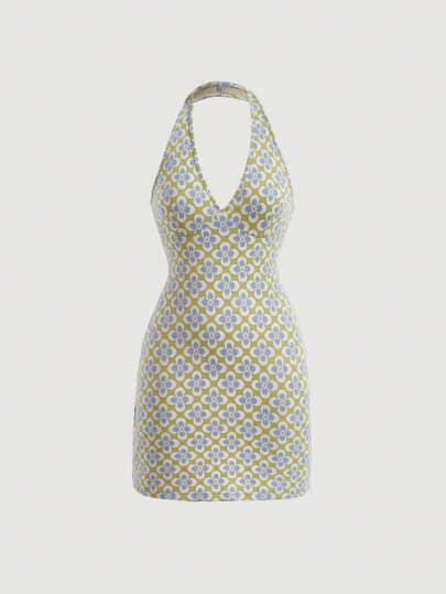 SHEIN MOD Allover Floral Print Backless Halter Dress - Multicolor - View 1