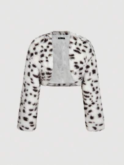 SHEIN MOD Women's Fashionable Leopard Print Faux Fur Jacket, Autumn/Winter - Black and White - View 1
