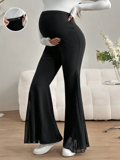 SHEIN Maternity Wide Leg Velvet Pants - Black - View 1