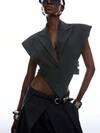 NEWLYSMO Women's Striped Lapel Sleeveless Short Summer Thin Blazer