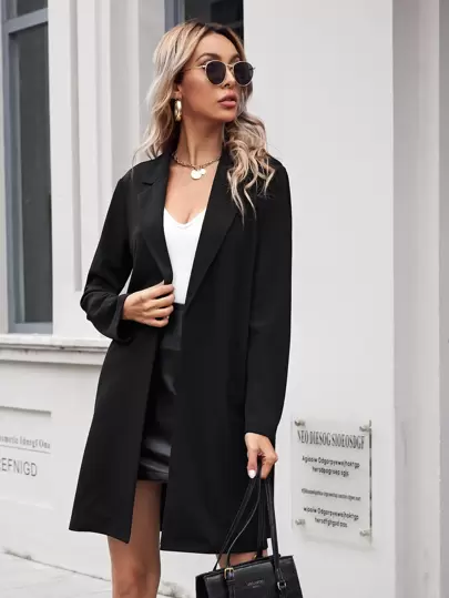 SHEIN Privé Öppen framtill Lång kavaj, Vinter, Business Casual, Elegant, Svart - Svart - Visa 1
