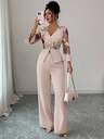 Rafferiza V-hals Batwing Guldtryckt Sexig Wide Leg Jumpsuit