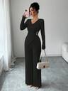 Rafferiza Höst/vinter Nytt enfärgat elegant pendlingst-shirt med v-ringning och långärmad design, metallspänne + vida ben, resår i midjan, damset i 2 delar, avslappnat och mångsidigt