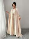 Rafferiza Satängklänning med rufsig, draperad hals, band på baksidan, utsvängda manschetter, elegant och romantisk, lämplig för höstens Maxi Satin-klänning för kvinnor