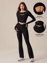 Lifespree Kvinnors enfärgad rund hals långärmad enkel topp och byxor sportdräkt