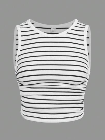 SHEIN Girlism Teen Girls Striped Print Tank Top - White - View 1