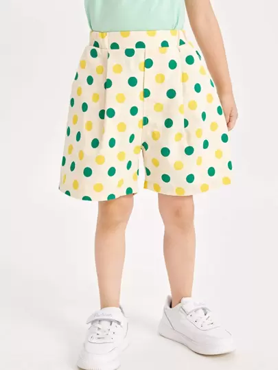 SHEIN Toddler Girls Elastic Waist Polka Dot Wide Leg Shorts - Multicolor - View 1