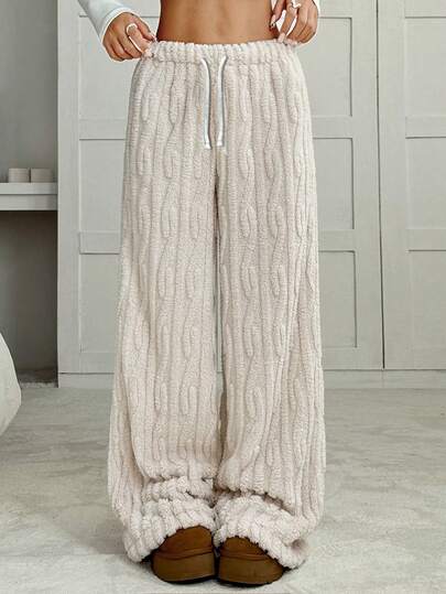 SHEIN Tween Girls' Loose Casual Fluffy Thickened Minimalist Comfortable Long Sweatpants, Autumn/Winter