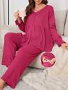 Moonlight & Mama Graviditet Enfärgad Enkel Topp & Blommönster Byxor Hemmakläder Loungewear Set, Mysiga Och Eleganta Detaljer, Kläder Outfit, Höst & Vinter