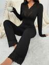 Kontrast Spets Draperad Krage Knot Sida Satin Cami Pyjamas Nattlinne Lång klänning