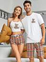 Plusstorlek dampyjamas med hjärtmönster, långärmad topp och byxor, mysiga och eleganta detaljer, höst- och vinterkläder
