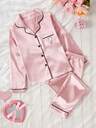 Dampyjamas med kontrastfärger och slag, lös långärmad pyjamas, höst- och vinterkläder, pyjamasset för kvinnor, sovkläder för kvinnor