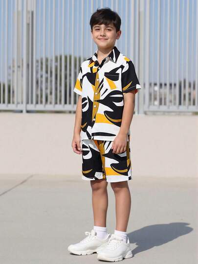 SHEIN Vacaura Tween Boy Graphic Print Shirt & Shorts Without Tee, School, Campus, College - Multicolor - View 1