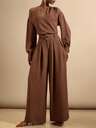 SHEIN Veneréa Fransk atmosfär med slagmönster i brunt kavaj- och byxset
