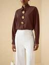 Vesra Damblus med blommig knapp och enfärgad elegant långärmad