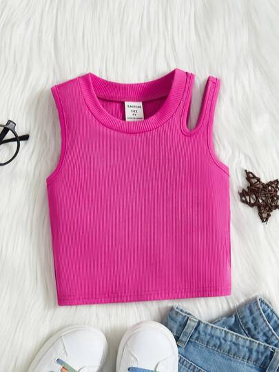SHEIN Ung flicka Rib-Knit Utskuren Linnen - Skrikrosa - Visa 1