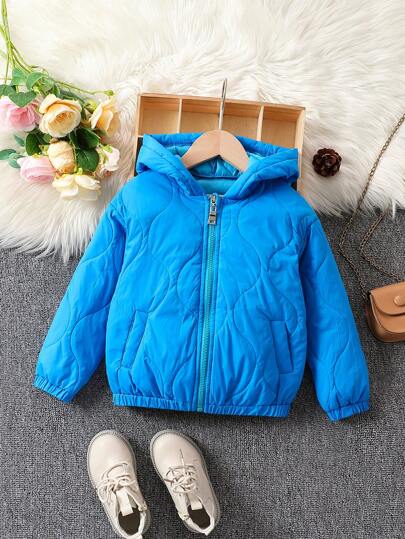 SHEIN Ung flicka Dragkedja Huva Quiltad kappa - Blå - Visa 1