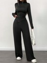 SHEIN Privé Kvinnors Hög krage Batvinge Ärm Topp Och Klänning Set
