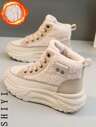 Vinterstövlar för kvinnor 2025, vita, plyschfodrade, tjocka, varma, plattform, moderiktiga, mångsidiga, student, fritidsstövlar, sportiga